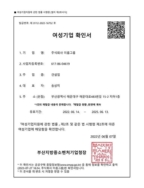 여성기업 확인서