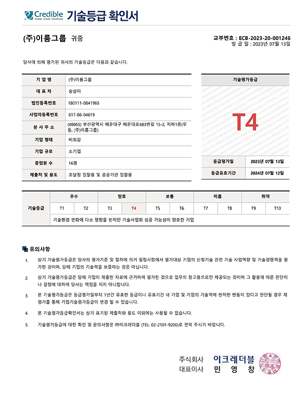 기술등급 확인서