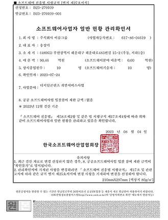 소프트웨어사업자 일반 현황 관리확인서